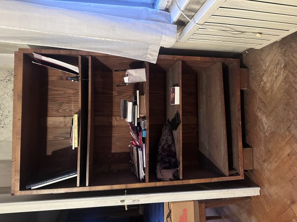 Podarim starejso omaro iz 60-ih let z nastavljivimi letvicami. Siroka 101 cm, globoka 48 cm, visoka 179 cm.