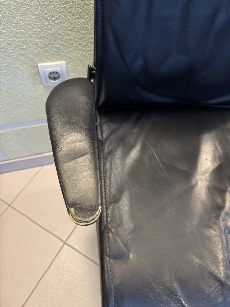 Usnjen stol je nekoliko slabše ohranjen, ker je eden izmed naslonov precej obrabljen, prav tako je usnje na sedišču precej izrabljeno (kot je videti na fotografijah).