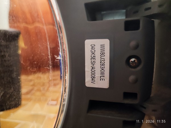 Rabljen, še delujoči pralni stroj Samsung bele barve, star približno 10 let.