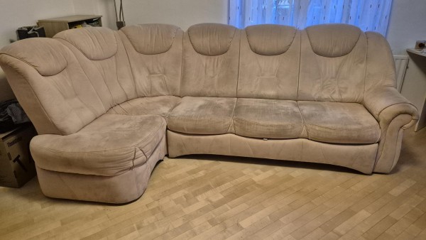 Podarim sedežno garnituro (kotna 3+1). Oblečena v microfibro, starost cca. 12 let. Širina enoseda cca. 65 cm, troseda cca. 160 cm, kotni del cca. 90x90 cm. Sedežna se raztegne v ležišče, zato nima predala pod sedalnim delom. Podarim, transport organizirate sami. Prevzem na Viču v Ljubljani.