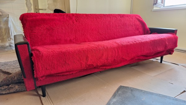 Podarim dobro ohranjen rdeče črni retro kavč iz 60. let prejšnjega stoletja; kavč je možno raztegniti v posteljo. Zaščitno prevleko se lahko odstrani in opere. Mere: