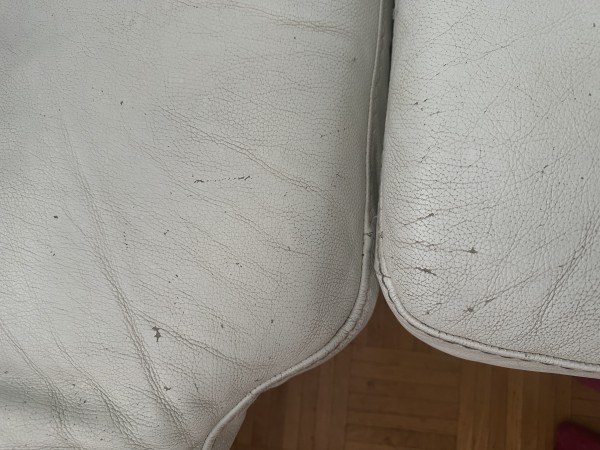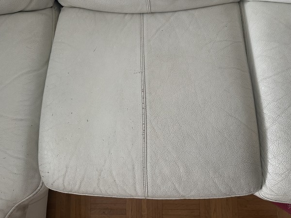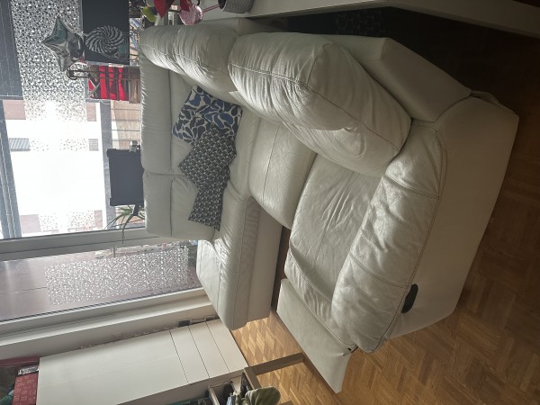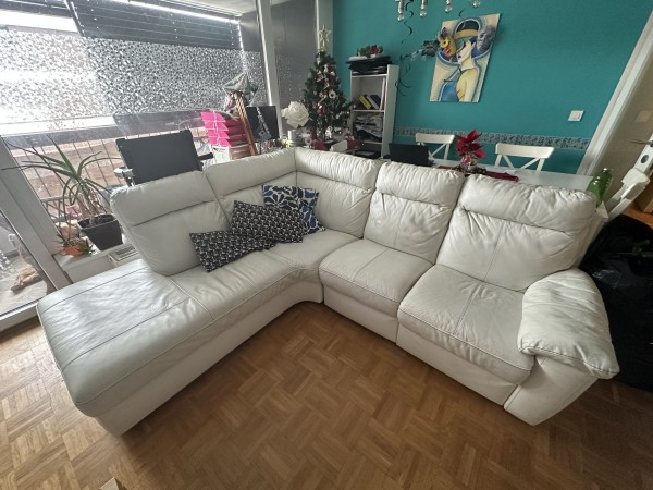 Bela usnjena sedezna, kotna, s pocivalnikom.