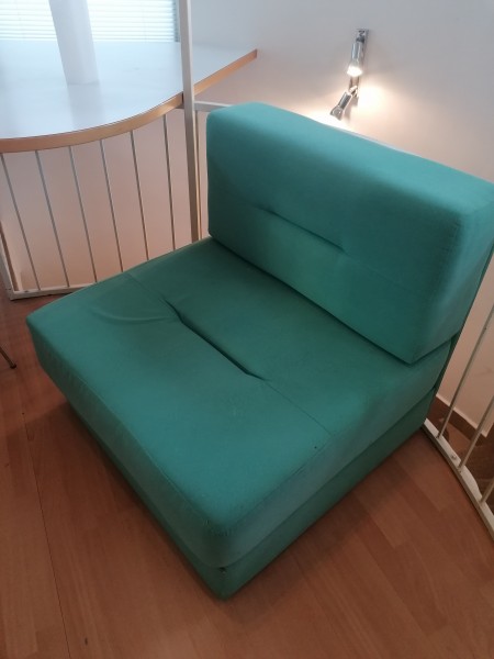 Zelene barve, dim. Š 85 cm, G 90 cm, V 85 cm. Raztegljiv v ležišče dim. 85 x 200 cm.