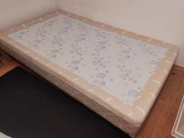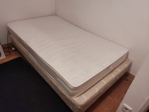 Postelja 120X200 s pripadajočo vzmetnico. Vzmetnica je bila polita in ima zato madež, prevleka vzmetnice se laho sname in opere.