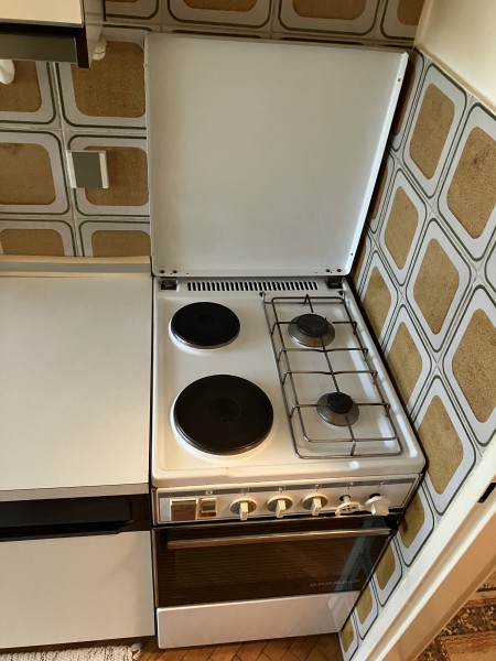Starejši, a dobro delujoč štedilnik - v 3. nastropju, eno od njih le po stopnicah. Če pridete ponj, naj bosta najmanj 2, ker je kar težak.