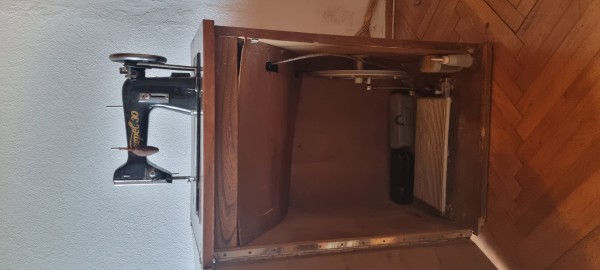Podarim Csepel 30 šivalni stroj z omarico. Omarica z šivalnim strojem je na mehanski pogon.