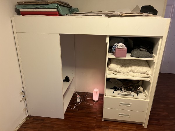 Zgornji del pograda, spodaj je omara. namesto omare se lahko spodaj naredi tudi ležišče. za dostop do postelje se uporablja izjemno stabilna lestev (železna)