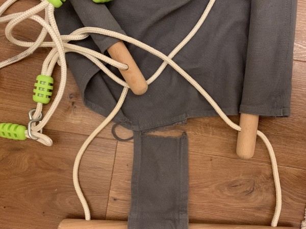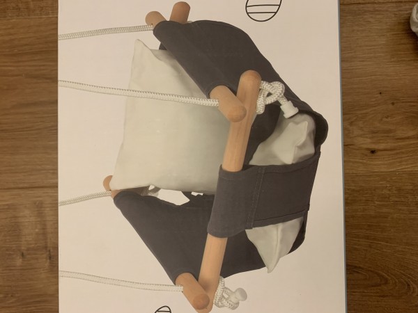 Otroška gugalnica iz blaga, uporabljena v notranjih prostorih. Strgana ob šivu, potrebno popravilo.