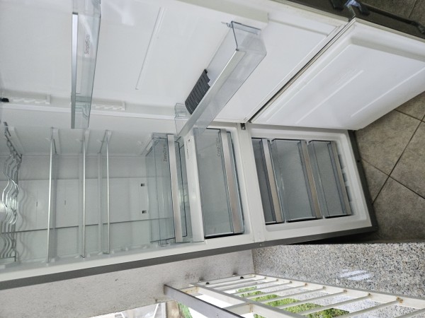 Brezcfizičnih poškodb, hladilni del ne deluje (ne hladi, luč dela), poličke na vratih so nalomljene a še funkcionalne. Zamrzovalni del dela, lahko so predali poškodovani, a ne vpliva nafunkcionalnost.