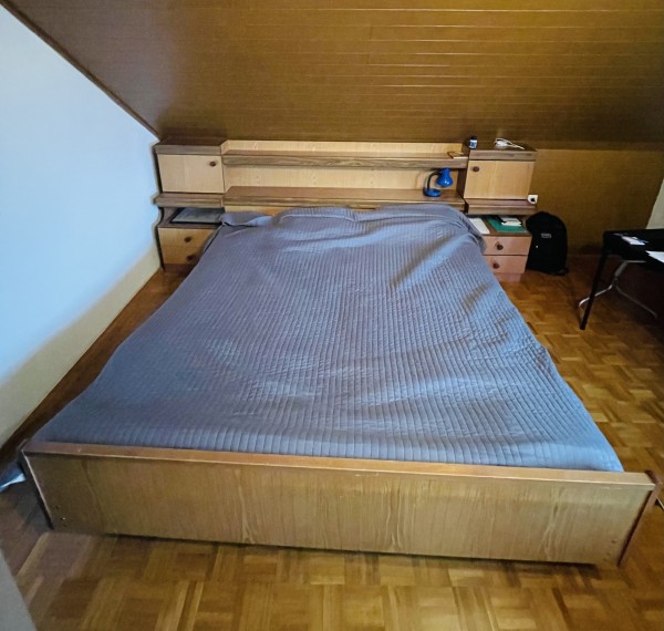 Podarimo zakonsko posteljo dimenzij 180x190 z vgrajenim predalom za odeje (za vzglavnikom), vgrajenima nočnima omaricama ter lučkama (brez žarnic, ne vem ali še delujta).