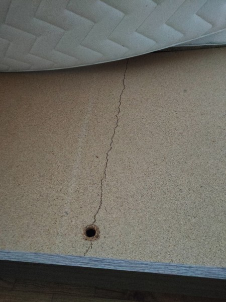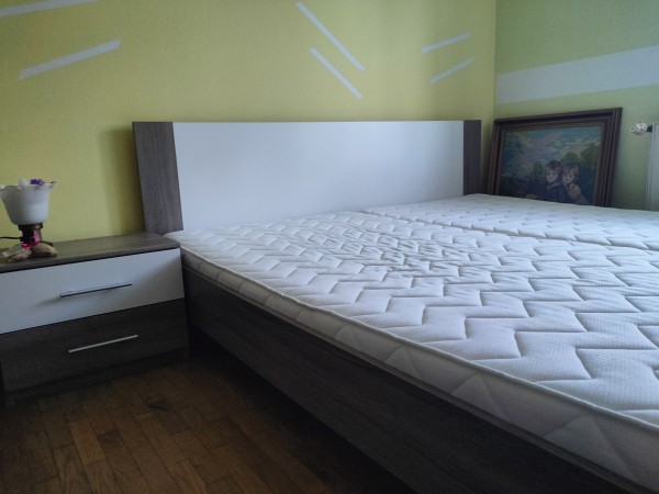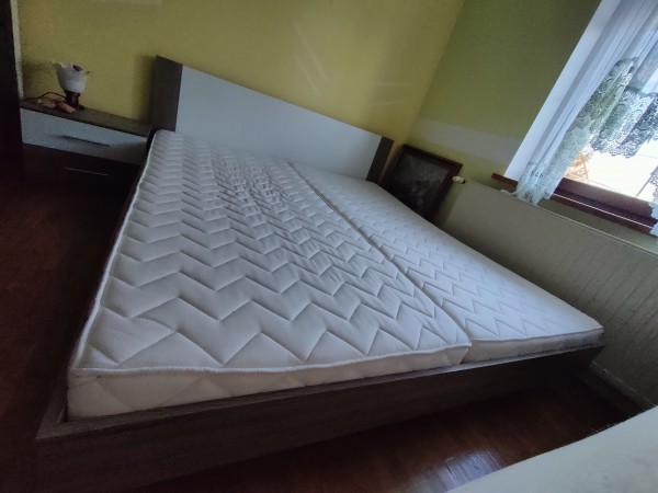 Uporabljena samo parkrat za goste, ohišje, nočne omarice in jogija kot novo. Potrebna samo menjava poda na eni strani.
