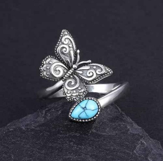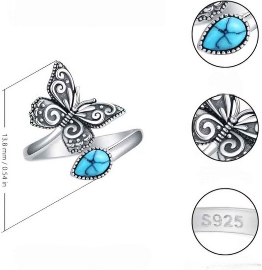 Srebrni prstan z metiljem nastavljive turkizno barvo vezice nakit v viktorijanskem slogu, darila za rojstni dan za žensko, dekleta, prijateljico, sestro, ženo z oznako 925.