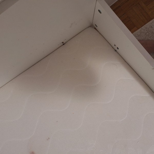 Postelja z vzmetnico ni zlomljena, je pa potrebno pritrditi zebelj v zelezno okovje.