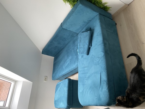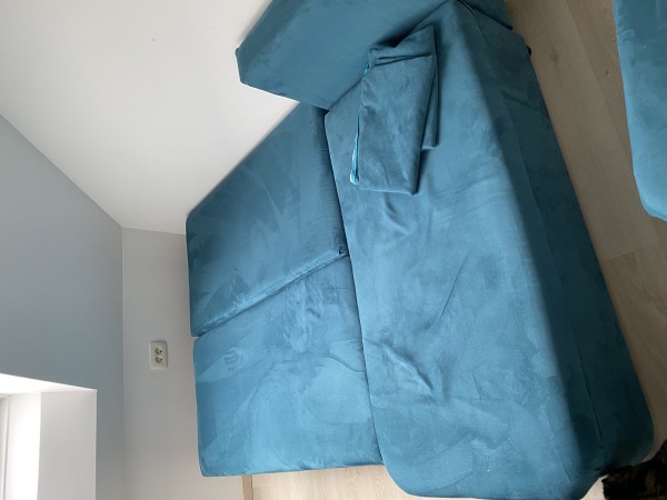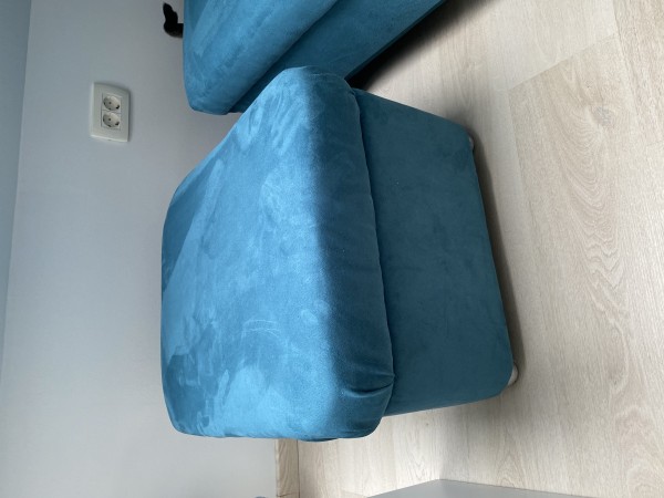 Kavč je starejši, vendar smo ga pred dvema letoma obnovili z novim blagom (mikrofibra). Blazine so bile zal prevec obrabljene, vendar se jih da nadomestiti. Prilagamo dve prevleki iz enakega blaga.