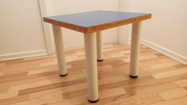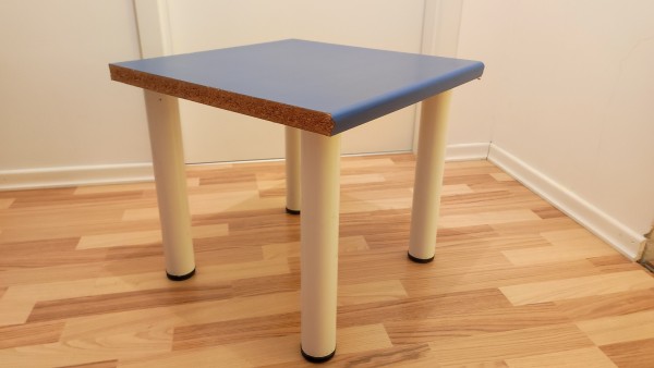 Modra kvadratna mizica, dimenzije 50 x 50 cm, višina 45 cm.