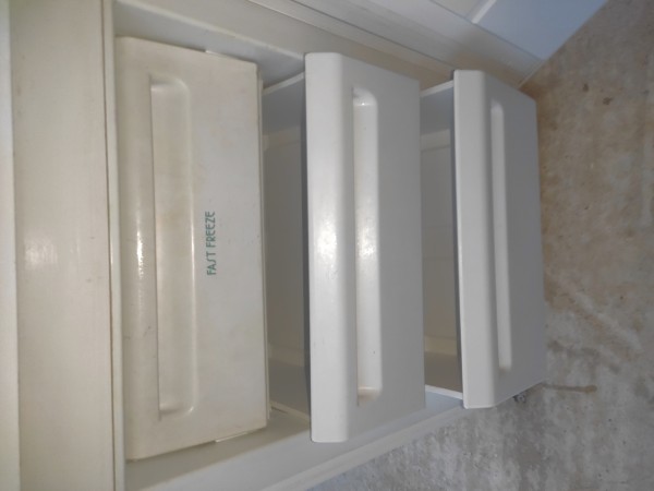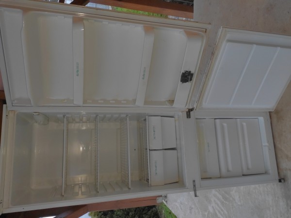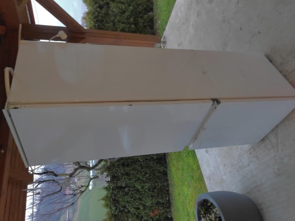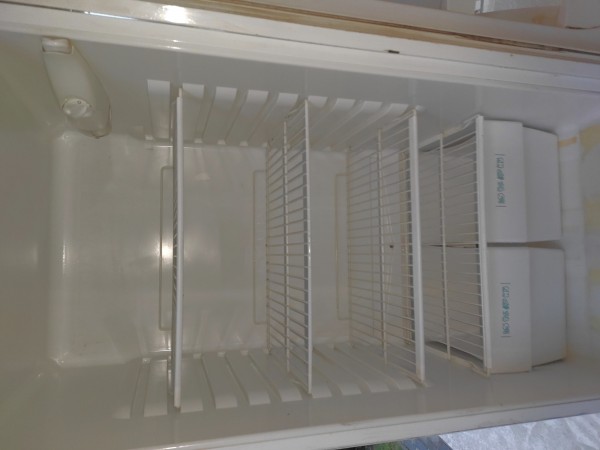 Vidni so znaki starosti. Spodnja polica na vratih je bila poškodovana, vendar je popravljena.