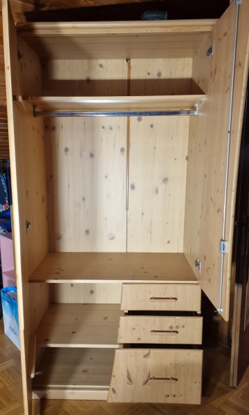 1x obešanje zgoraj, 3 predali in police spodaj.