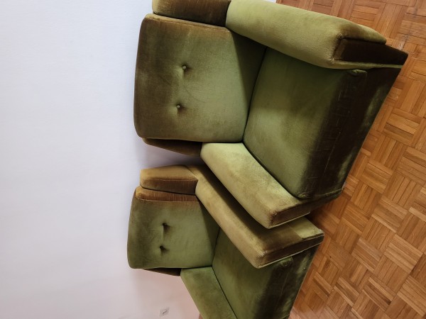 Rabljeno, veno pokrito, zeleni žamet, dodatno vzmeteno, dobro ohranjeno.
