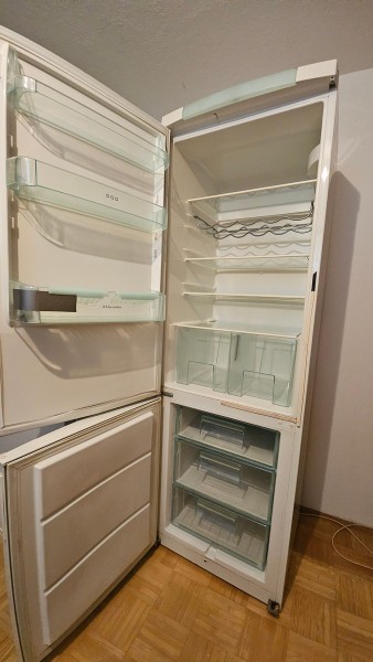 Zgoraj hladilnik, spodaj 3 predali zmrzovalnika; velikost 185x60x60; starost cca 15 let.
