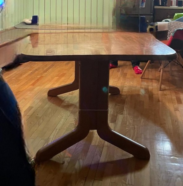 Velikost mize 98×165 cm, debela 3,2 cm, masiva, zgornja plošča lamelna,