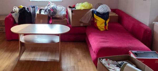 Zaradi prenove podarim rdeč kavč. Približne mere so 3.2m x 2.2m. Kavč je udoben in čist, nič strgan