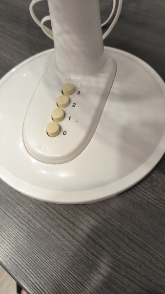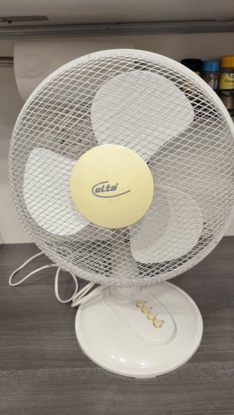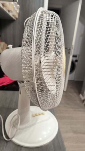 Bel namizni ventilator. Rabljen, vendar zelo dobro ohranjen. Ima 3 hitrosti, piha zelo dobro in ima tudi side swing.