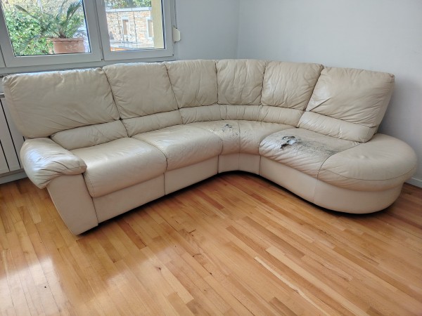 Naravno usnje bež (vanilija) barve, L oblike - daljši del 250cm, krajši del 200cm.