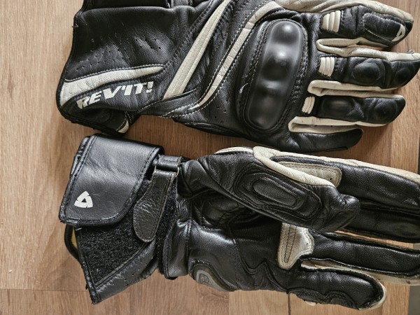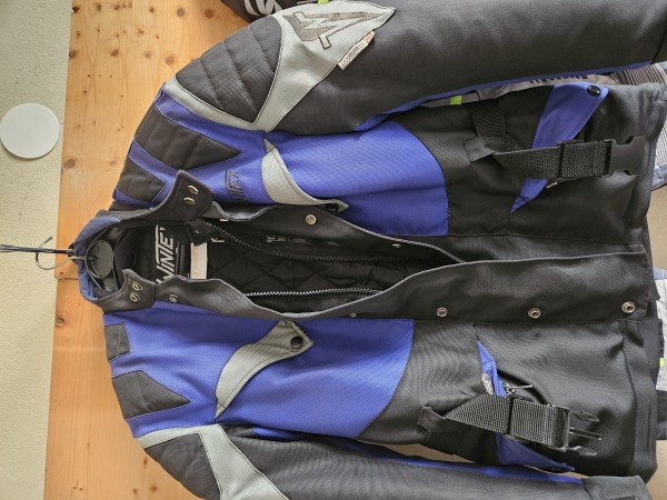Dobro ohranjena Modra zenska podlozena motoristicna jakna in rokavice za velikost 38.