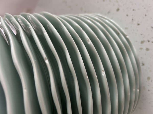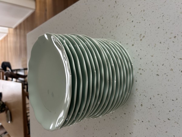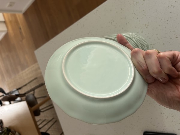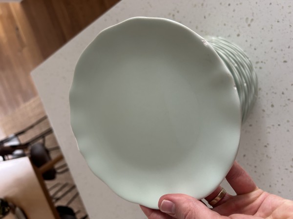 Podarim 17 malih kroznikov lepe pastelne zelene barve, rob valovit. Rabljeni nekaj let, znaki obrabe vidni na robovih - glejte slike.