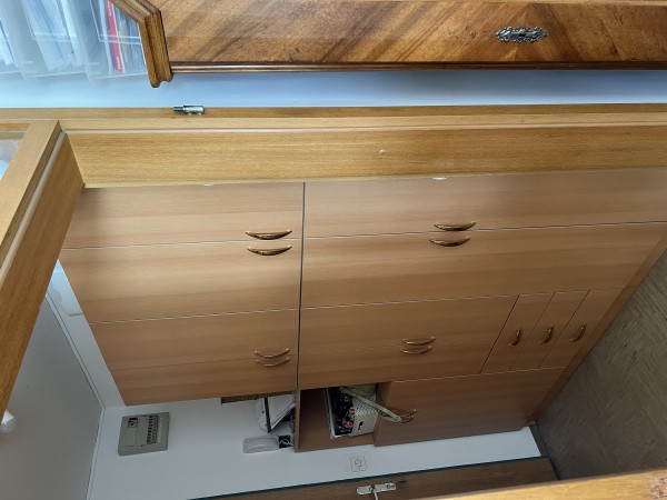 Iveral omare za predsobo. Opis omare: levo za cevlje in telefon, v osrednjem delu: za obesanje jakn jn predalniki, desno omara s policami za razno kramo. Kovinski ročaji z zlatim finisem.