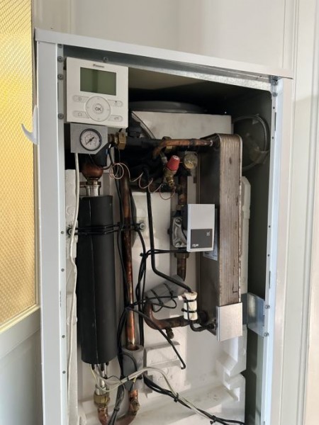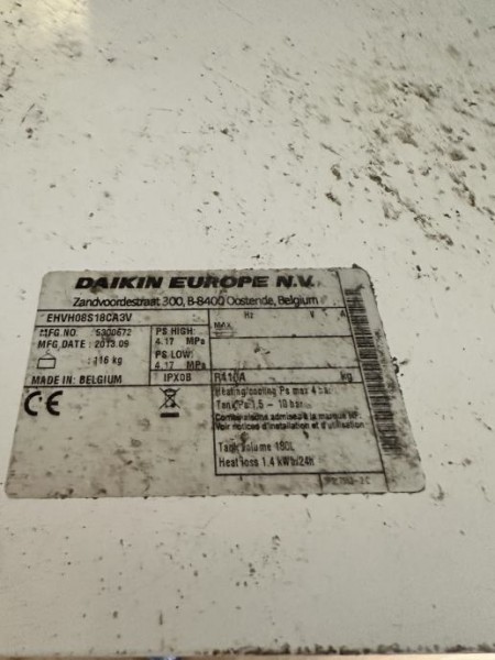 Delno funkcionalna notranja toplotna črpalka DAIKIN z nedelujočim bojlerjem. Toplotna črpalka je stara približno 7-8 let.