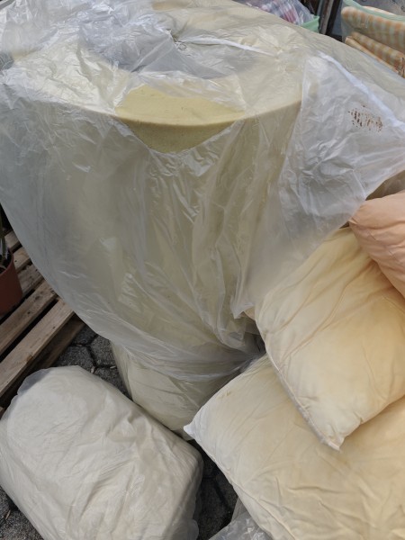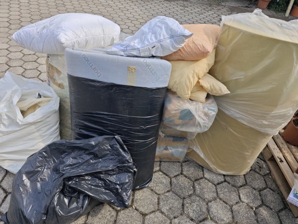 Podarimo nekaj prevlečenih pen v naslonjala, vzglavniki, pena za na posteljo (2 x 1,4 metra)