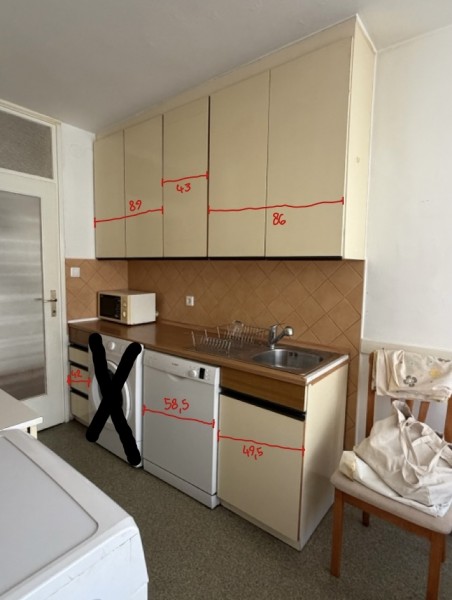 Podarjam kuhinjo s gorenje pečico, bosch pomivalnim strojem, gorenje mikrovalovko in napo. Obvezen je lasten prevzem. Pralni in sušilni stroj nista del ponudbe. Mere so podane na fotografijah v centimetrih.