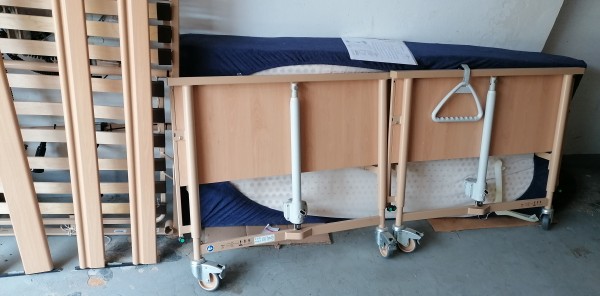 Kompletna negovalna postelja z električnim upravljanjem in lateks vzmetnico.