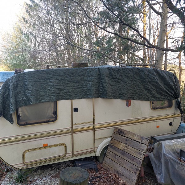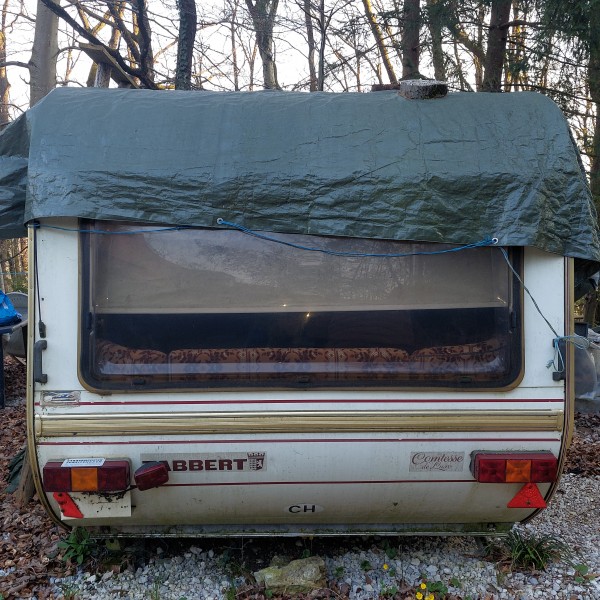Podarim.NEVOZNO prikolico Tabbert Comtesse. Je slabse ohranjenja, deloma ima fnite stene. Je pokrita, torej ni nove vodne skode.