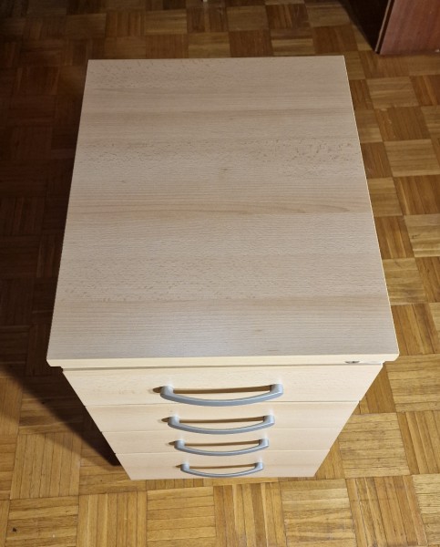 Oddam predalnik s 4 predali, svetle barve. Dimenzije višina 70 cm, širina 44 cm in globina 58 cm.