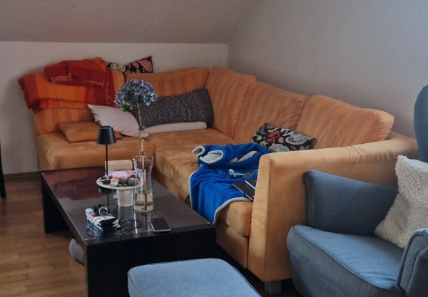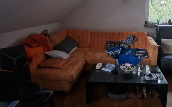 Podarim starejso sedezno garnituro oranzne barve.Raztegne se v lezisce.