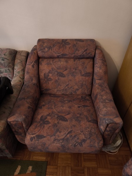 Podarim starejsi kavc in dva fotelja. Dobro ohranjeno, ker ni bilo v uporabi vec kot 10 let. Za prevoz poskrbite sami. Stanovanje je v pritlicju.