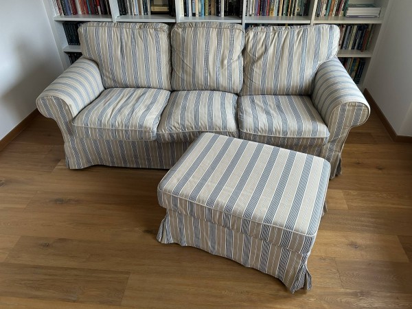 Podnožnik Ektorp, prevleka Karlshov bež/večbarvno