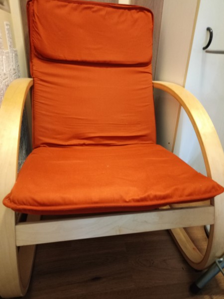 2 x Počivalnik , pralna Tkanina v opečni barvi. Sedež in naslon iz pene. Okvir iz lesenega furnirja. Š 67 x V 92 x G 78 cm.