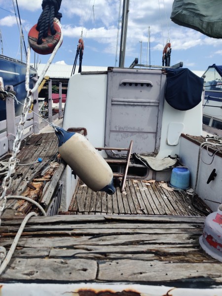 Zatisnjenje oken, menjava lajštic na palubi/lajštice iz tikovine so zraven, nakup novega jadra in bolobranov, zamenjava vrvi....