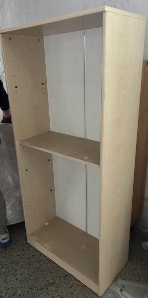 Poličnik ima 4 police (niso vse vidne), svetle barve.