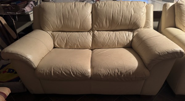 Podarim usnjena kavča (2+1), krem barva. Garnitura je v kleti – prevzem osebno.