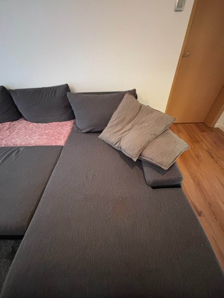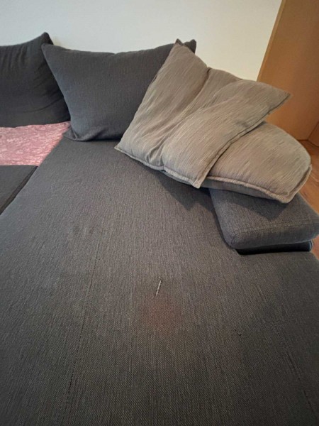 Srednje ohranjen trosed. Blago na trosedu je v zelo dobrem stanju, težava pa je umetni skaj, ki se je začel lupiti.