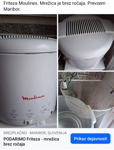 Friteza Moulinex, rabljena. Mrežica je brez ročaja. Prevzem je Maribor.