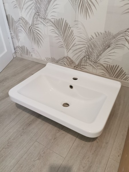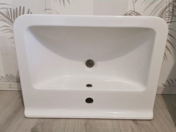 Keramični umivalnik rabljen, lepo ohranjen, dimenzija 60x46 cm. Montaža na steno ali nad omarico.
