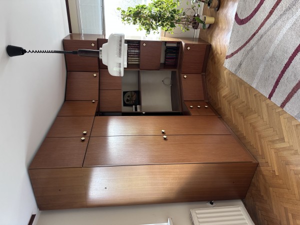Zelo lepo ohranjen kotni regal iz 70-tih, dimenzije 250 * 148 cm, višina 250 cm. Vsa vratca se zelo lepo zapirajo. Kakovostne izdelave. Za prevzem pokličite.