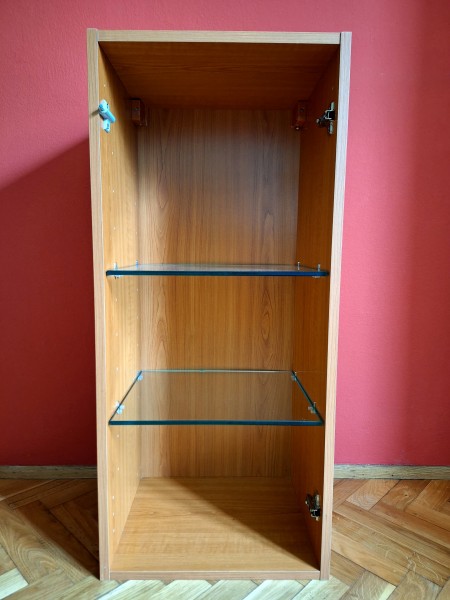 Minimalni znaki obrabljenosti. V vitrini ena polica manjka.