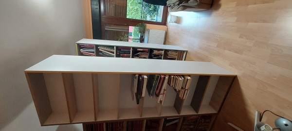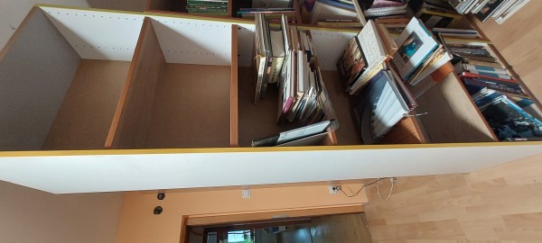 Podarim omaro za knjige, dim 66 x 49 x 230 cm, hrbet je na sredi omare, na eni strani je 19 cm, na drugi pa 29 cm, omara je raztavljiva, sta 2 kosa.