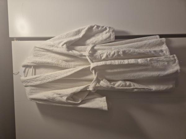 Bel frotir kopalni plašč velikosti XXL, z dvema žepoma in pasom, Svilanit.